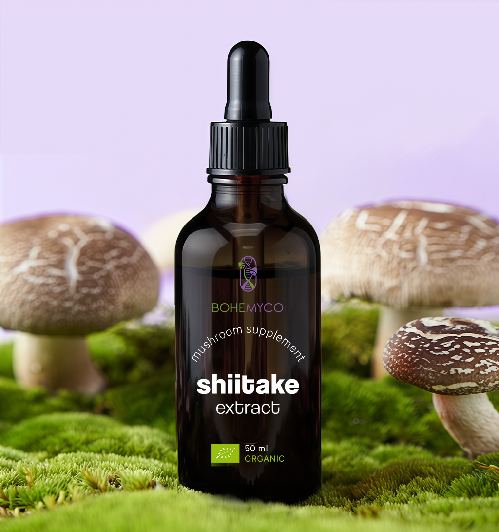 🍄🟫 Shiitake is a classic mushroom of natural vitality. Ancient Japanese traditions associated it with energy and the natural appearance of the skin, while modern users value its rich natural profile and gentle, balanced effect. Shiitake completes the BOHEMYCO complex, adding a sense of wholeness and daily resilience.